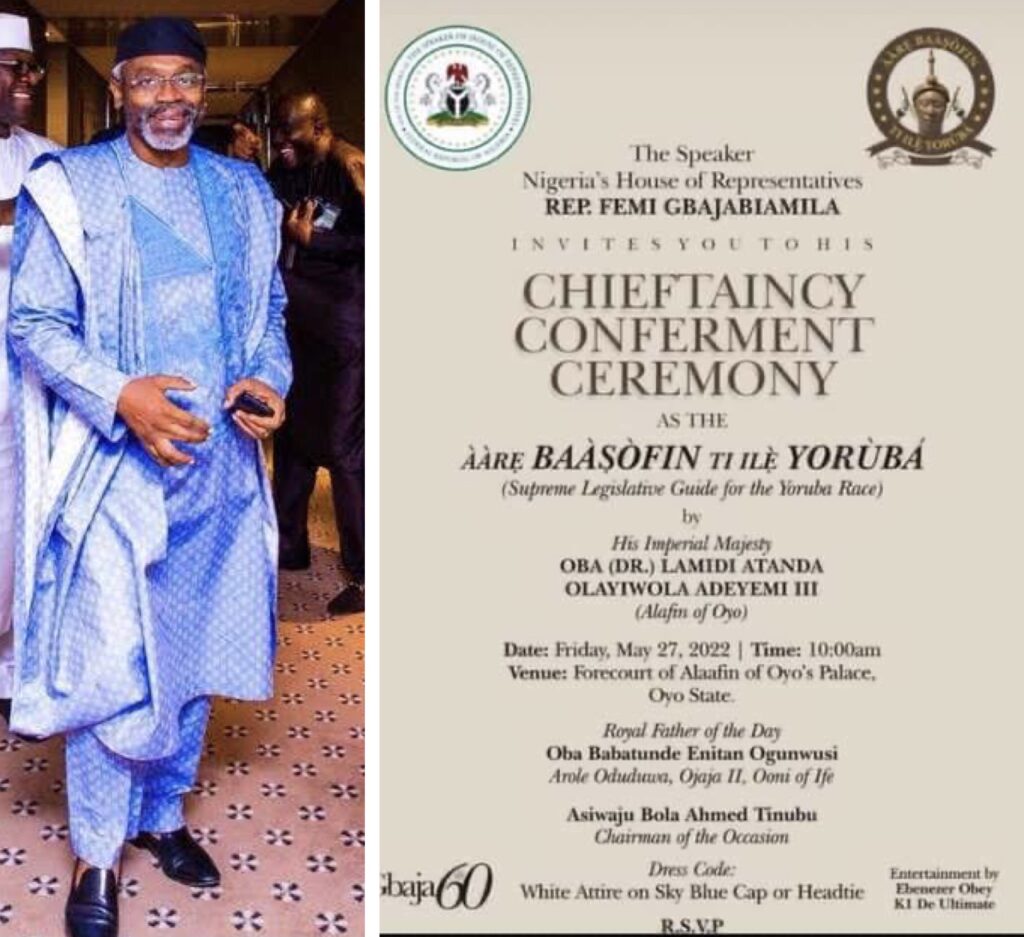 Had the Alaafin of Oyo Oba Lamidi Adeyemi had not joined his ancestors on Saturday, Speaker of the House of Representatives Femi Gbajabiamila would have been conferred with the title Aare Baasofin of Yorubaland on May 27, this year.
