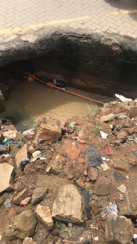 The owner of medicine store near the hole, God Dey Pharmacy said he didn’t know when exactly the man fell inside the hole but it was the noise from people around that brought him out and he saw they were trying to help the man which was drowning but unfortunately they were unable to.