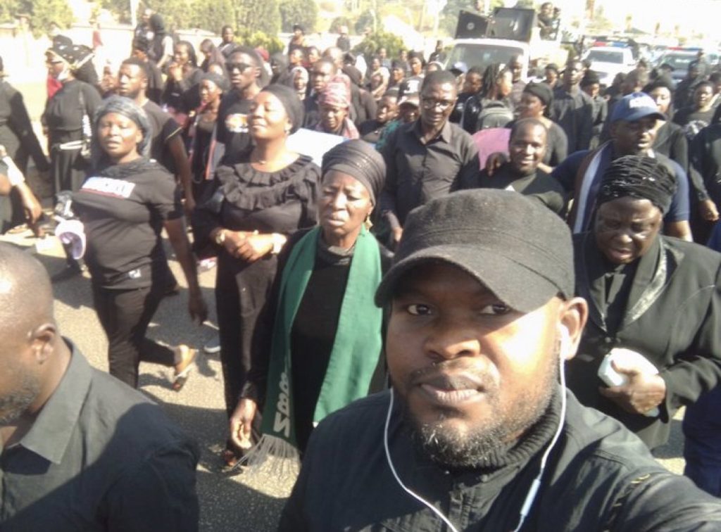 The protesters can be seen in a video uploaded by another X handler, @Chude, all donned in black with placards as they marched along the street.
