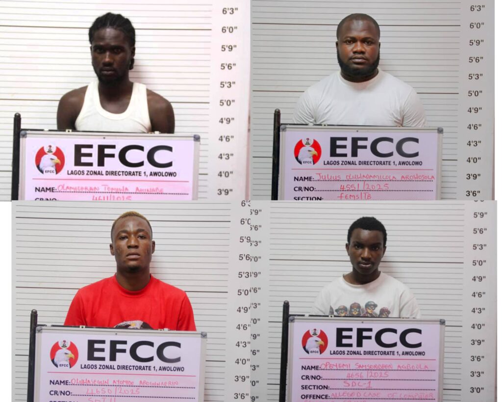 According to the statement, the convicts namely Arowosola Oluwadamilola, Oluwasegun Ayomide, Opeyemi Agboola, and Akinade Olamilekan, were arraigned before before Justice Daniel Osiagor by the EFCC’s Lagos Zonal Directorate 1.