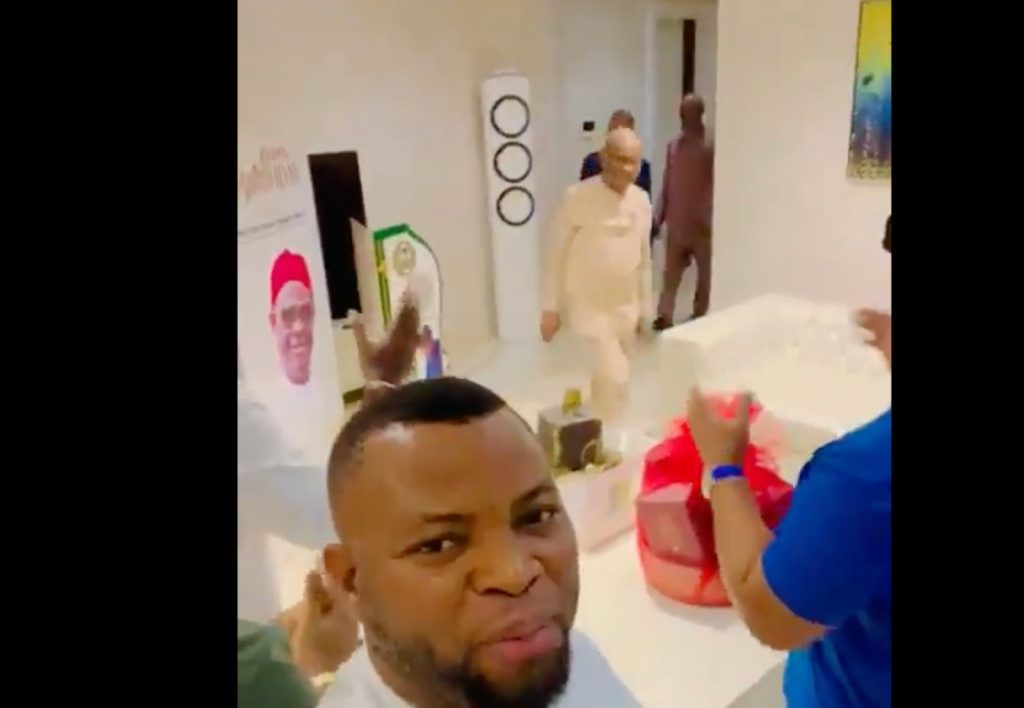 The lawmakers, whose seats have been declared vacant by the Speaker, Hon Edison Ehie, were seen singing birthday song in honour of Wike who sauntered into the place joining the lawmakers in their songs.