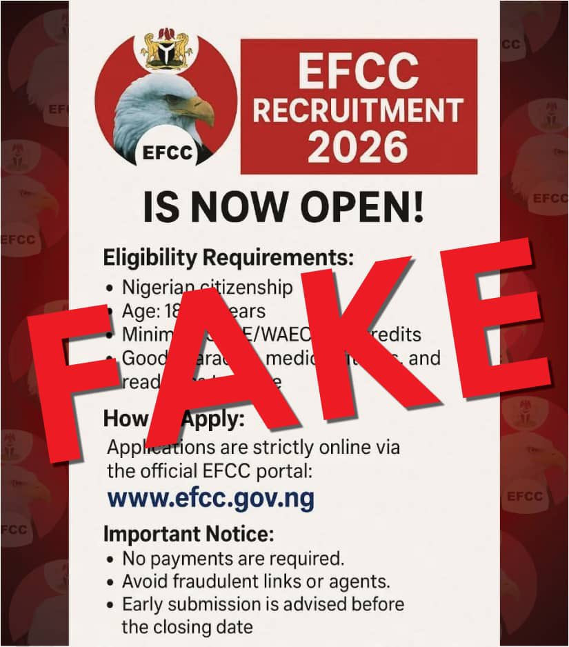 The anti-graft agency urged members of the public to beware of any fake advertorial suggesting that its recruitment portal is open.