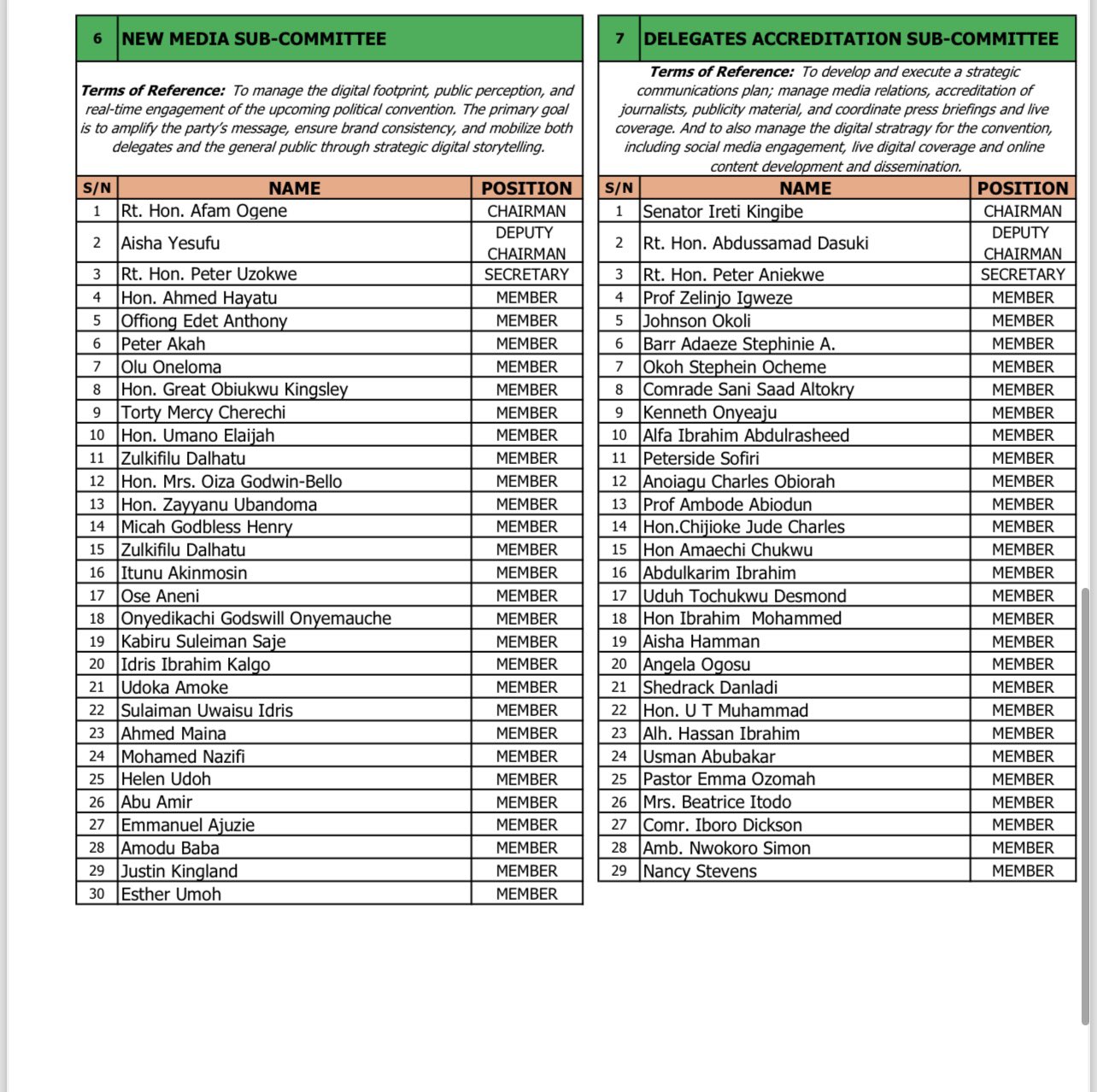 Other members include Tajudeen Bakare, Ben Obi, Solomon Dalung, and Nkoyo Toyo amongst others.