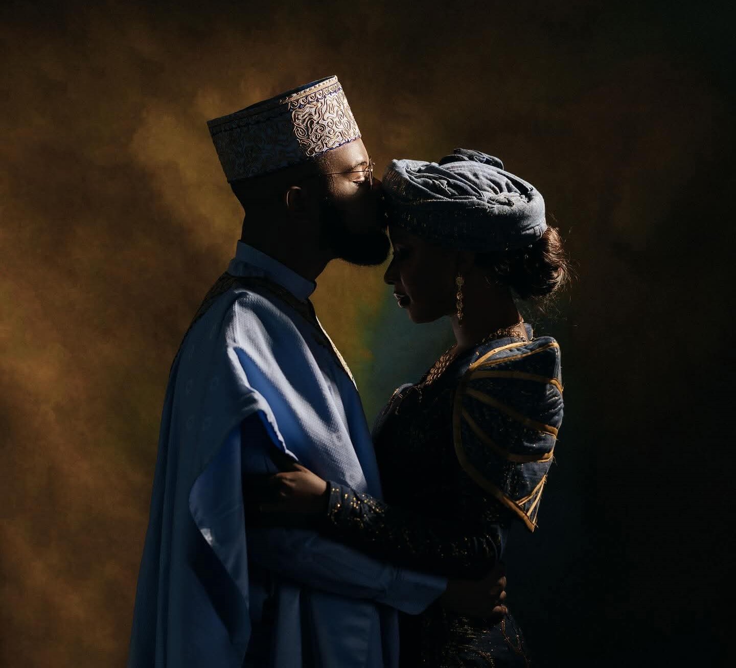 The couple were dressed in what appeared to be traditional Hausa attire as they shared romantic postures together.