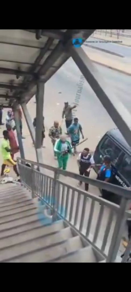 The journalists were visibly chased and shoved into their vehicle parked under Ojota pedestrian bridge.