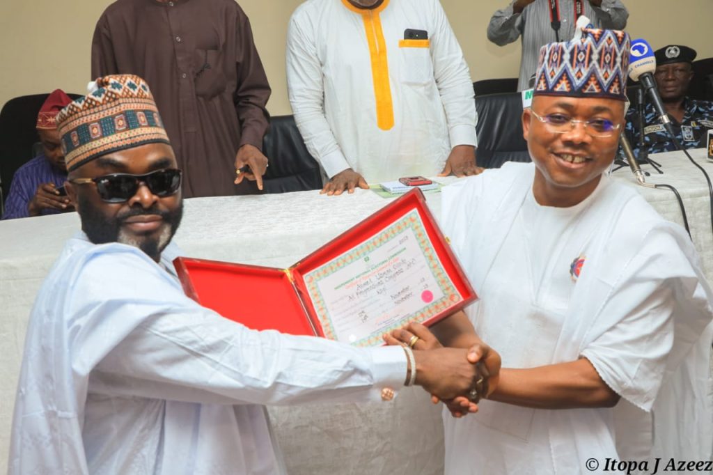 Mr Sani Adam (SAN), the National Electoral Commissioner for Kwara, Niger and Kogi, who presented the certificates to them, congratulated them for emerging victorious in the governorship election.