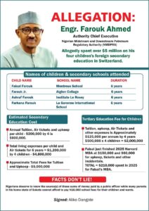 The chairman of Dangote Group, Aliko Dangote, has released detailed claims regarding the alleged expenses of over $5 million on the secondary education of the four children of the Chief Executive Officer of the Nigerian Midstream and Downstream Petroleum Regulatory Authority (NMDPRA), Engr. Farouk Ahmed.