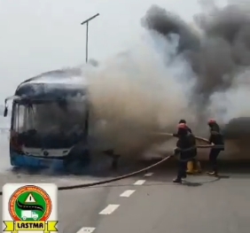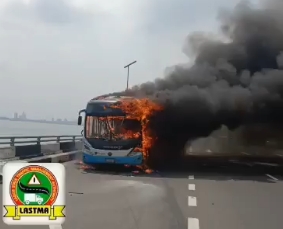 “A high-capacity bus is on fire on the Third Mainland Bridge, by Adekunle, inwards Iyana Oworo, affecting traffic.