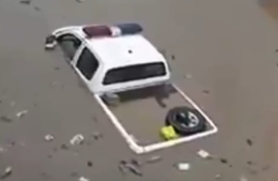 As captured in a now viral video shared on X on Thursday, the patrol van was abandoned by the officers in the middle of the heavily flooded street as the residents standing at the balcony of a storey-building made mockery of the officers.