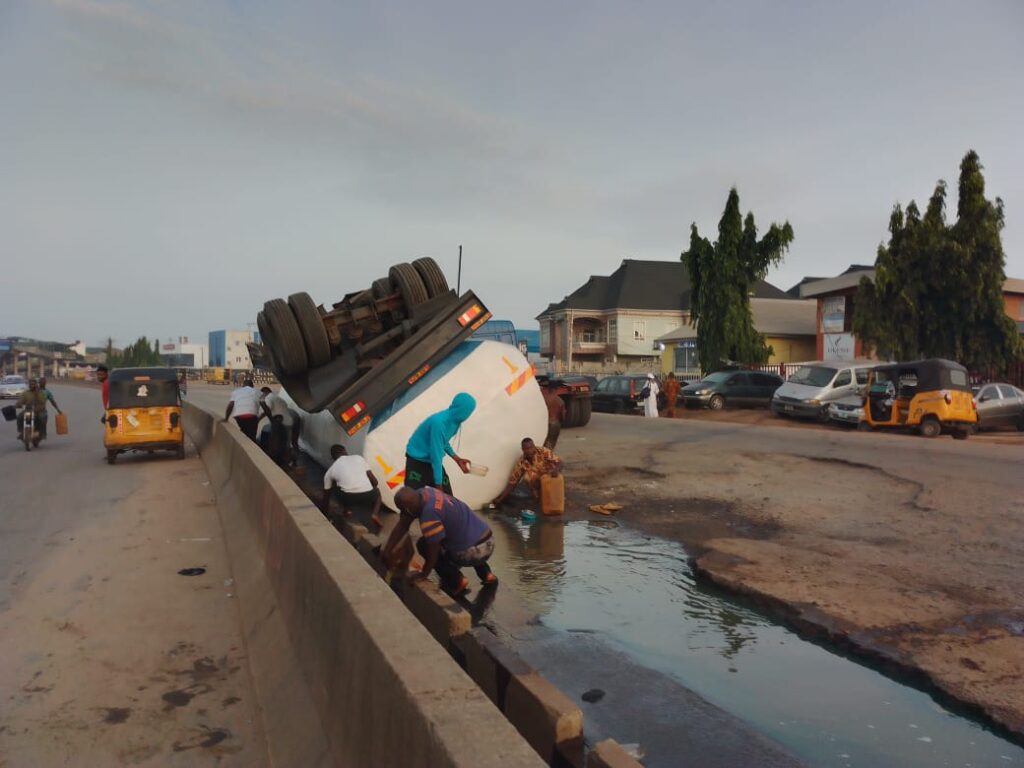 The agency in a statement by its Director, Public Affairs and Enlightenment Department, Adebayo Taofiq, confirmed that the tanker (JJJ 596 XX) fully loaded with diesel products fell around 6:10am and had its contents spreading on the expressway.