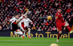 Andreas Pereira put Fulham ahead in the 11th minute with an acrobatic volley from Antonee Robinson’s cross which bounced off Liverpool full back Andy Robertson’s thigh and into the net past goalkeeper Alisson.