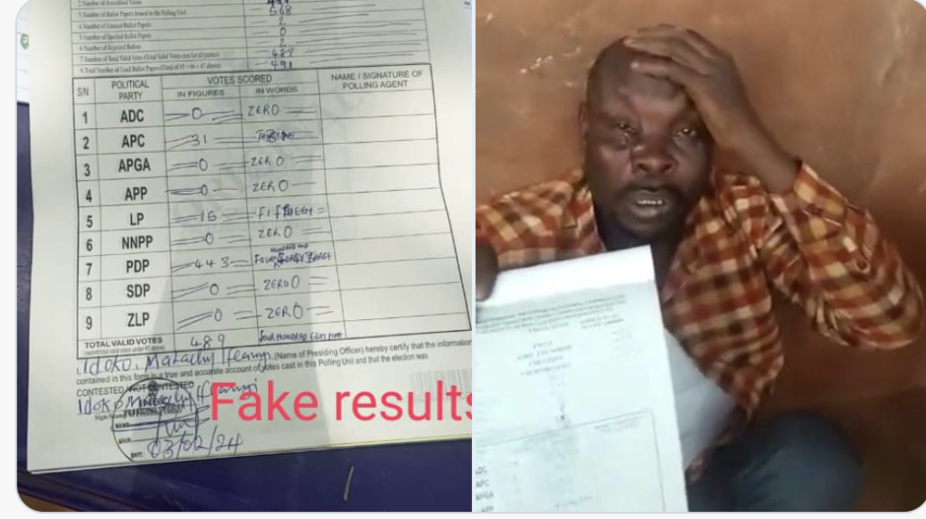 According to the news, voters who trooped out to exercise their franchise beat the individual to pulp on discovering that he came with pre-filled result sheets to the polling unit