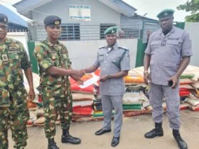 According to the commanding officer, a total of 525 bags of smuggled foreign parboiled rice was handed over to the Nigeria Customs Service (NCS) Seme Area Command while 60 bags of the same commodity was given to NCS Western Marine Command.