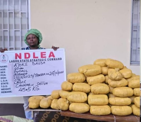 The National Drug Law Enforcement Agency (NDLEA) has arrested a 40-year-old suspected female drug dealer, Ajoke Dauda, with 45.5 kilogramme of skunk, a strain of cannabis.