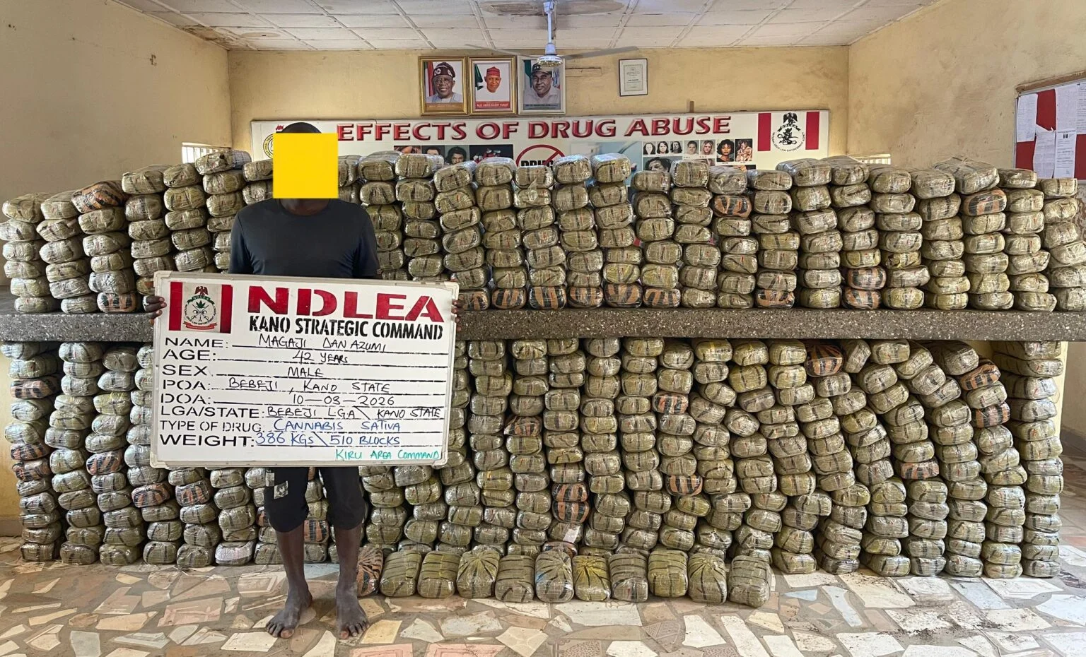 The National Drug Law Enforcement Agency (NDLEA), Kano Strategic Command, has seized a large consignment of cannabis sativa and arrested a suspect in a major operation ahead of Eid-el-Fitr celebration.