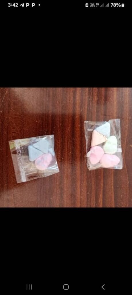 “Parents, please pay attention to those substances that look like sweet, chocolate, candy or biscuit in the pockets and bags of your children.