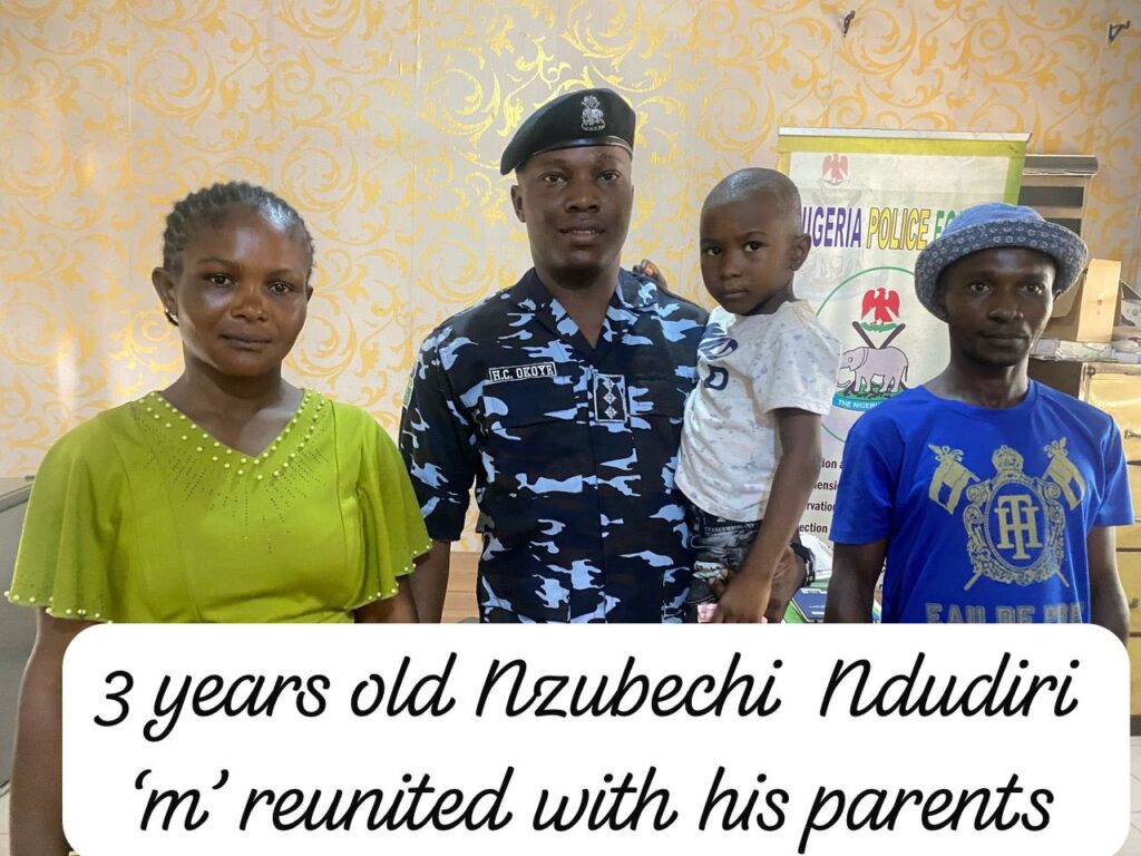 Following Eziobodo’s arrest, the child was reunited with his parents, Mr. and Mrs. Ududiri Michael, while efforts are ongoing to apprehend possible accomplices.