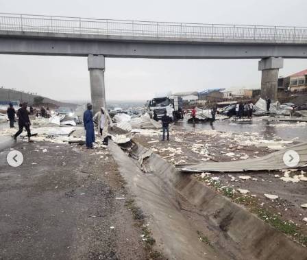 According to reports, the downpour, which began around 3:30 p.m., blew off the terminal’s roof and scattered debris across both lanes of the dual carriageway, bringing vehicular movement along the Abuja-Keffi highway to a near standstill.
