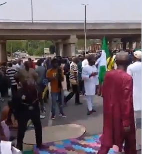 Some of the older protesters sat at the entrance of the Presidential Villas as others charged towards the gate heavily guarded by police officers and other security operatives.