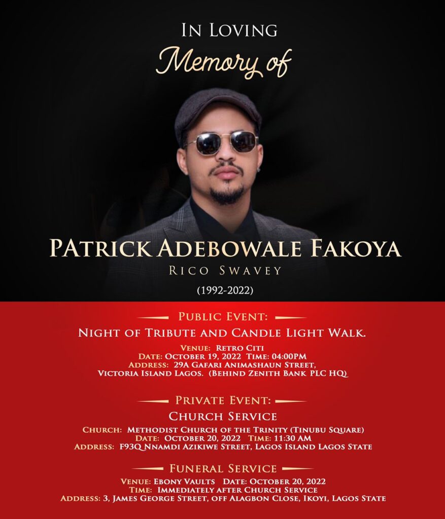 The family of late Big Brother Naija star, Rico Swavey, has announced the arrangements for his burial.