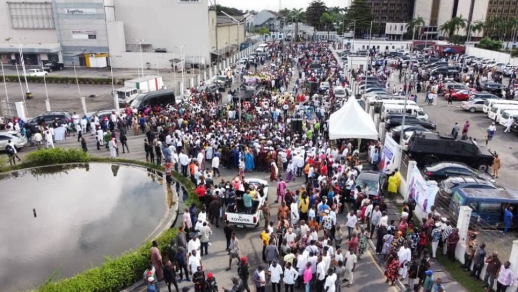 The Rivers Government House was on Thursday besieged with mammoth crowd largely comprising Fubara’s loyalists under the aegis of the Simplified Movement.