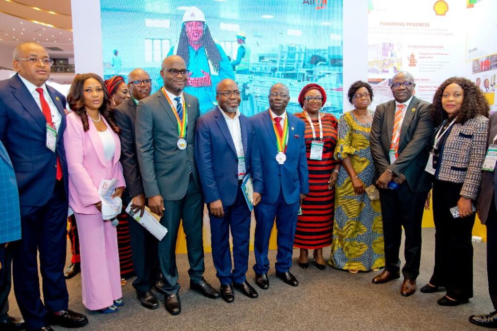 He and other dignitaries were conducted round the Shell stand by Magdalene Umoh, a Senior Production Systems Engineer.