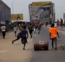 A video shared on X showed the protesters barricading both lanes with empty oil barrels and tree branches.