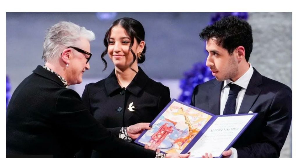 The teenage twins of jailed Iranian activist Narges Mohammadi have accepted the Nobel Peace Prize on her behalf.