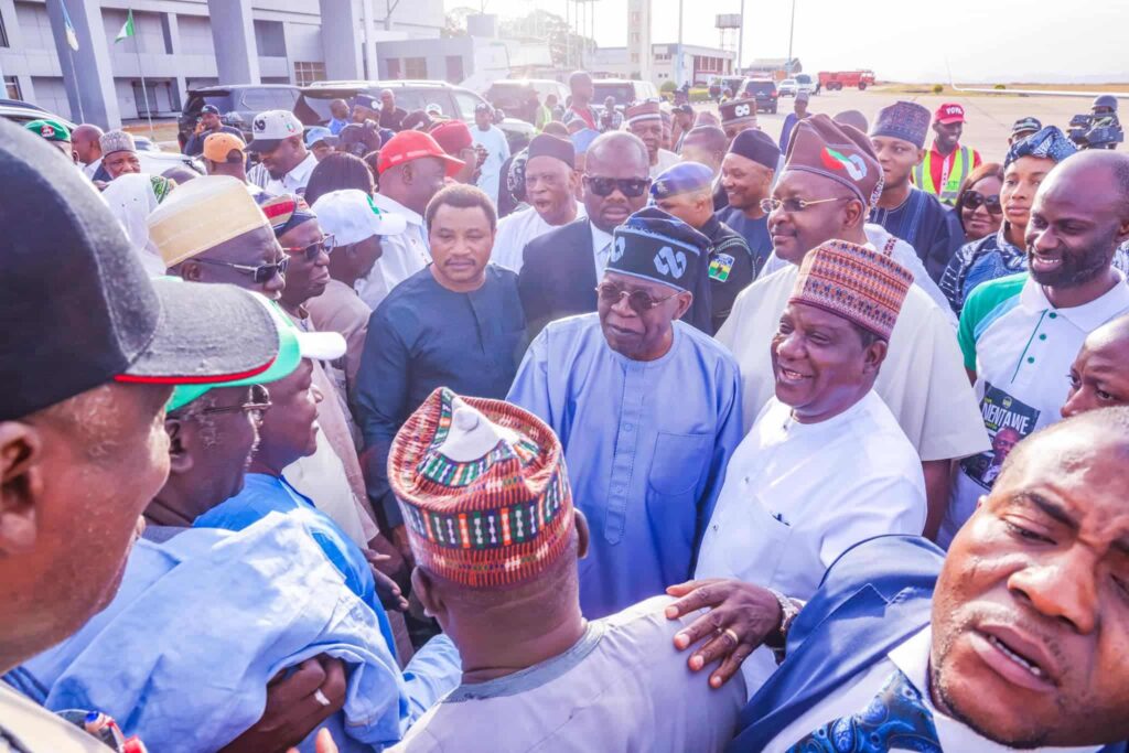 The Presidential Candidate of the ruling All Progressives Congress, APC, Bola Tinubu has arrived Jos in Plateau State ahead of his campaign scheduled to kick-off today.