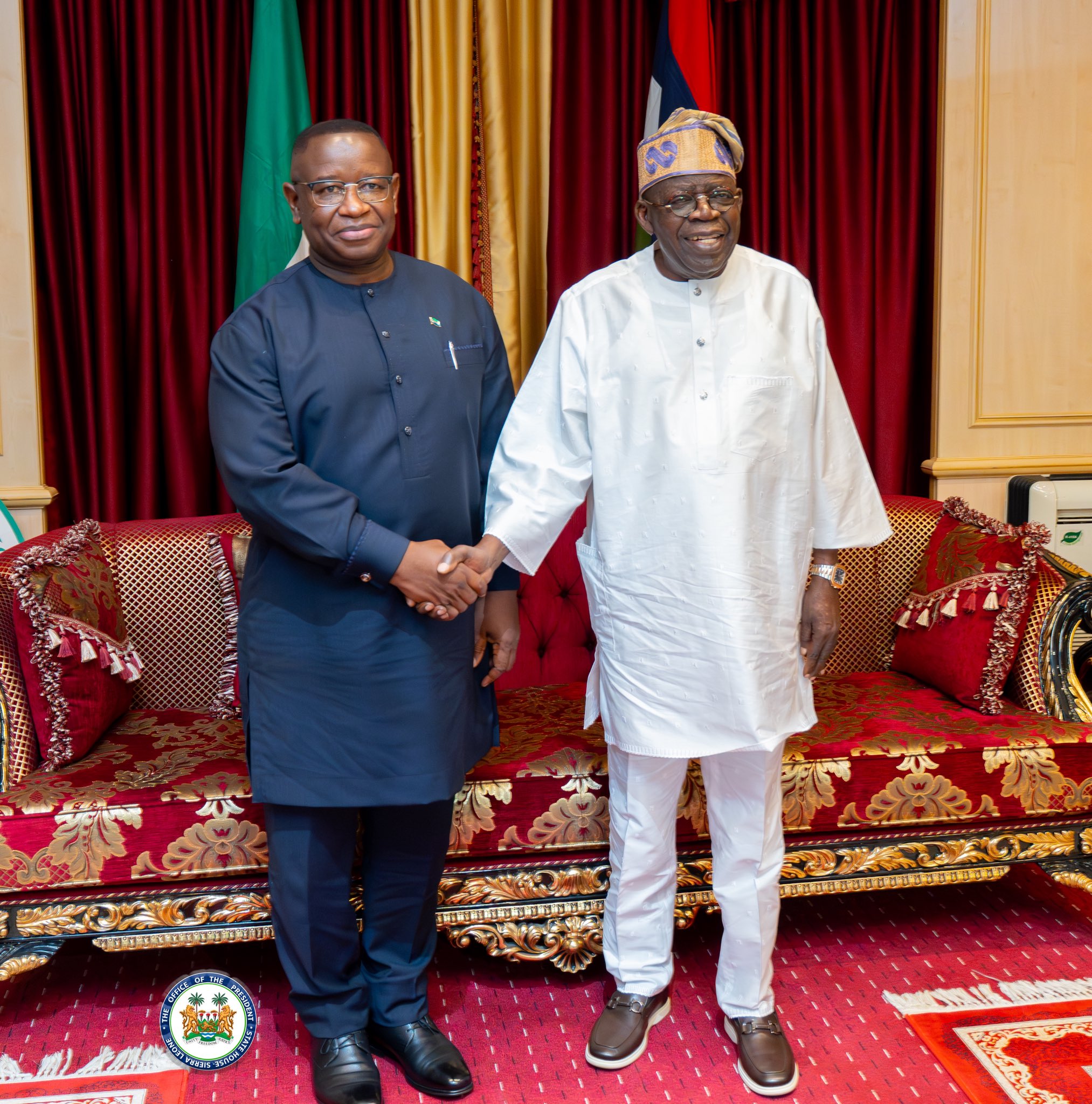 President Bola Tinubu has on Friday evening hosted Sierra Leone’s President, Julius Maada Bio, at the Presidential Villa, Abuja.