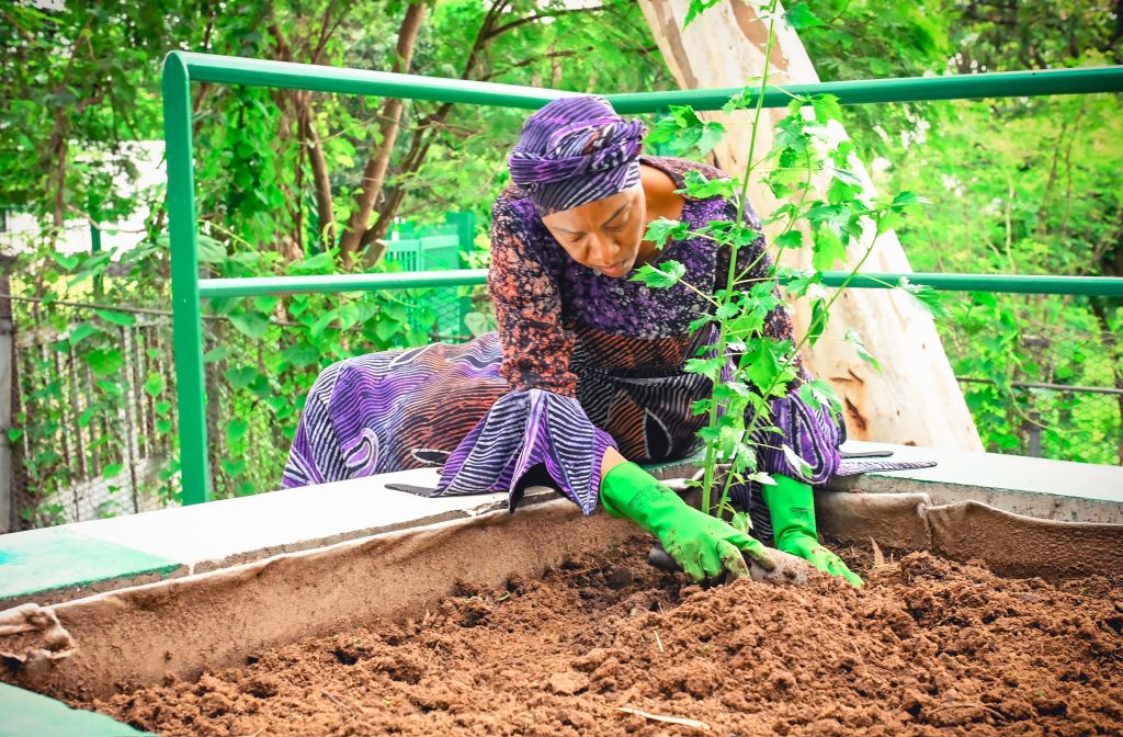 Tinubu who was seen in her small garden within the seat of power in Abuja said promoting home gardens comes with several benefits.