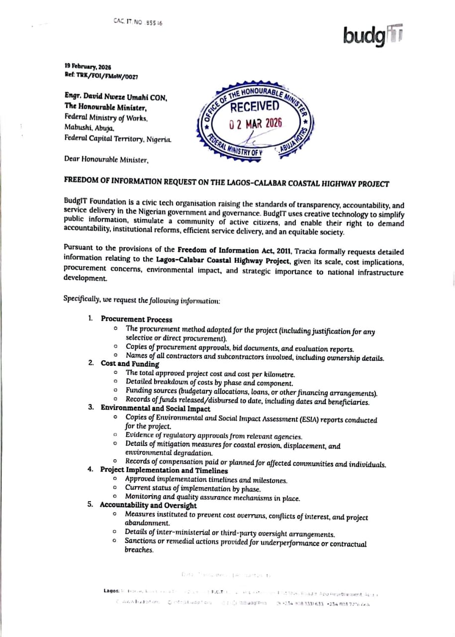 The group said the lack of response weakens public trust and raises concerns about how major infrastructure projects are managed in Nigeria.