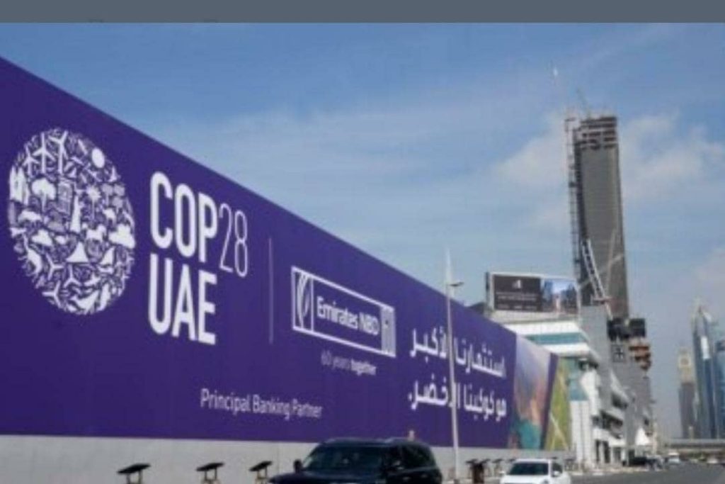 Cars pass by a billboard advertising COP28 at Sheikh Zayed highway in Dubai, United Arab Emirates, November 27, 2023. Representatives will gather at Expo City in Dubai, UAE, Nov. 30 to Dec. 12 for the 28th U.N. Climate Change Conference, known as COP28.