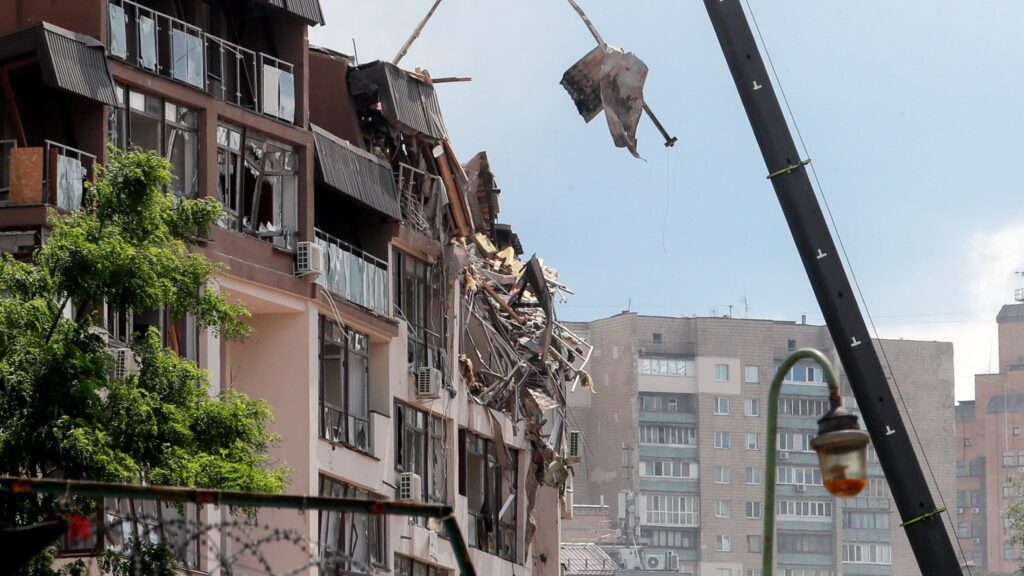 In Kyiv a nine-storey apartment building had its upper floors ripped apart. A seven-year-old girl was injured and underwent surgery. Her condition was later described as stable. Her mother – a Russian citizen – was also pulled from the rubble.