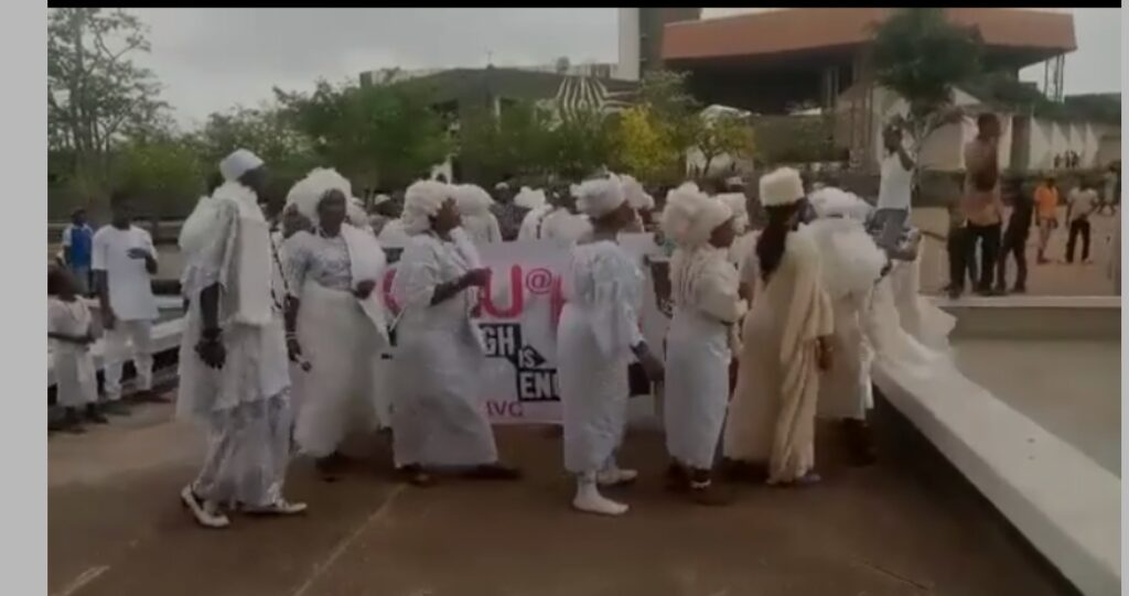 “They assembled at the Motion Ground of the University Secretariat, dressed in all-white spiritual traditional attire, chanting incantations while performing rituals.