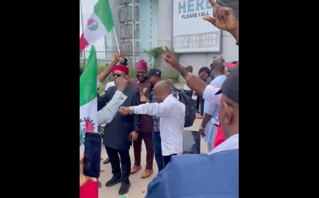 Ajaero, in white shirt singing with NLC members before the alleged attack